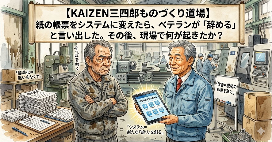【KAIZEN三四郎ものづくり道場】紙の帳票をシステムに変えたら、ベテランが「辞める」と言い出した。その後、現場で何が起きたか?