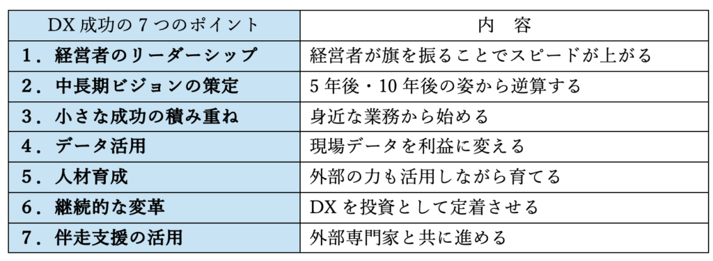 DX成功の鍵は「7つのポイント」