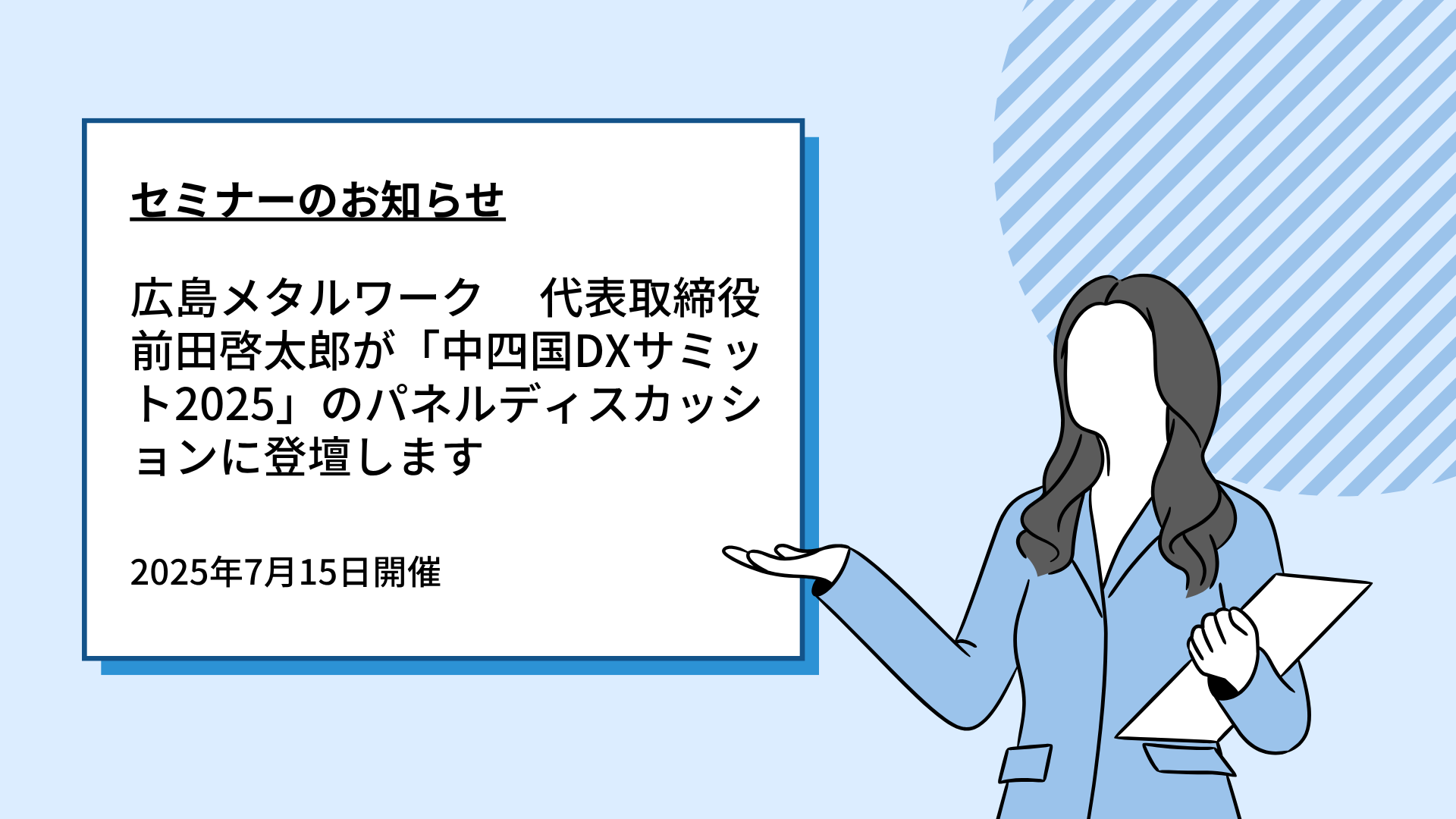 広島メタルワーク 代表取締役 前田啓太郎が、「中四国DXサミット2025」(2025年7月15日)に登壇します