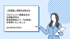 プロフェクト関連会社の株式会社石神製作所は、2025年6月1日付けで、経済産業省が定めるDX認定制度に基づく「DX認定事業者」としての認定を取得しましたのでお知らせいたします。