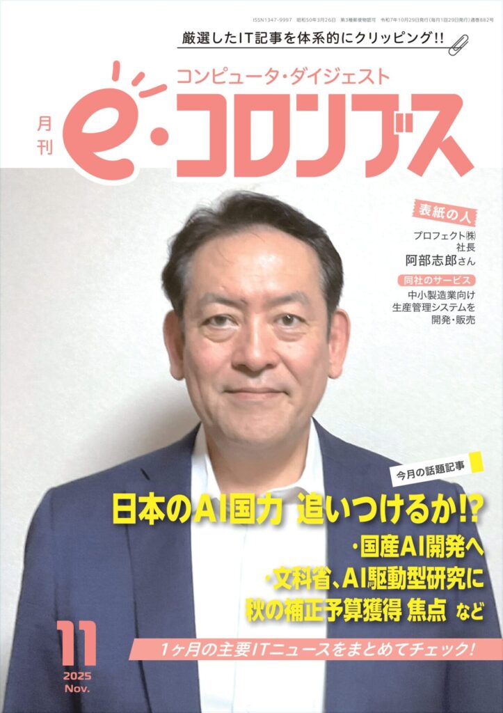 東方通信社の月刊「e・コロンブス」2025年11月号に弊社の記事「中小製造業向け生産管理システムを開発 メンバー8社が開発にたがいの知見生かす」が掲載されました。