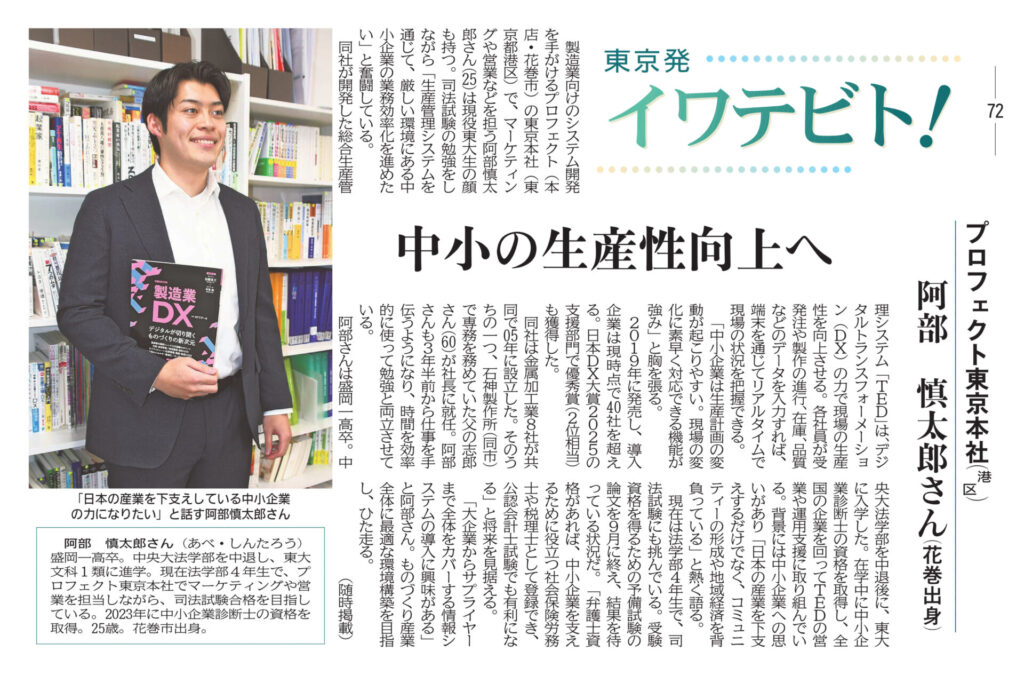 【メディア掲載のお知らせ】2025年11月16日付けの「岩手日報」にプロフェクト東京本社社員に関する記事が掲載されました