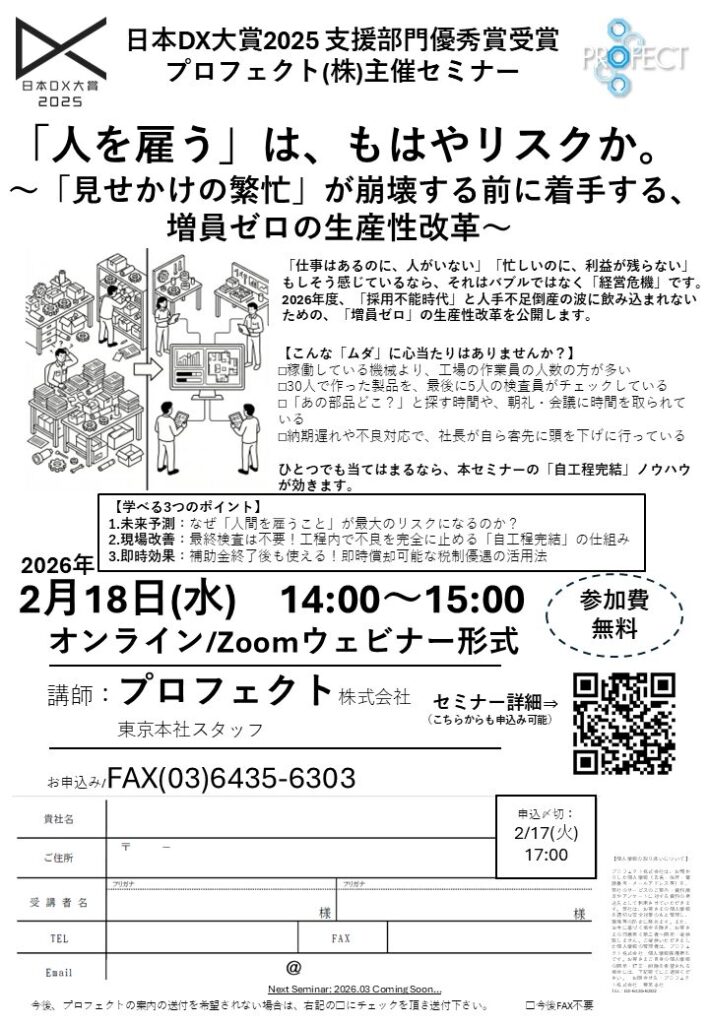 【2/18(水)14時~ オンラインセミナー開催のお知らせ】「人を雇う」は、もはやリスクか。~「見せかけの繁忙」が崩壊する前に着手する、増員ゼロの生産性改革~