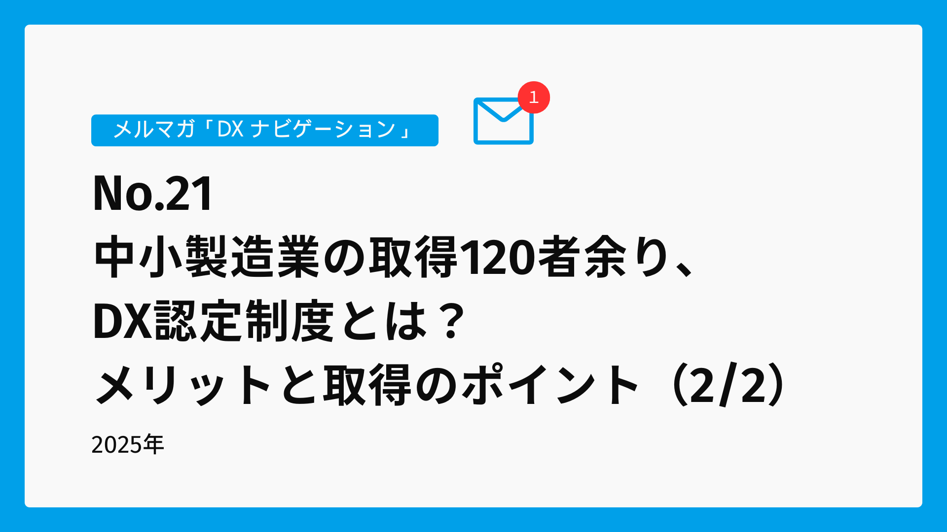 メルマガ「DXナビゲーション」バックナンバー:第21号 中小製造業の取得120者余り、DX認定制度とは?メリット取得のポイント(2/2)