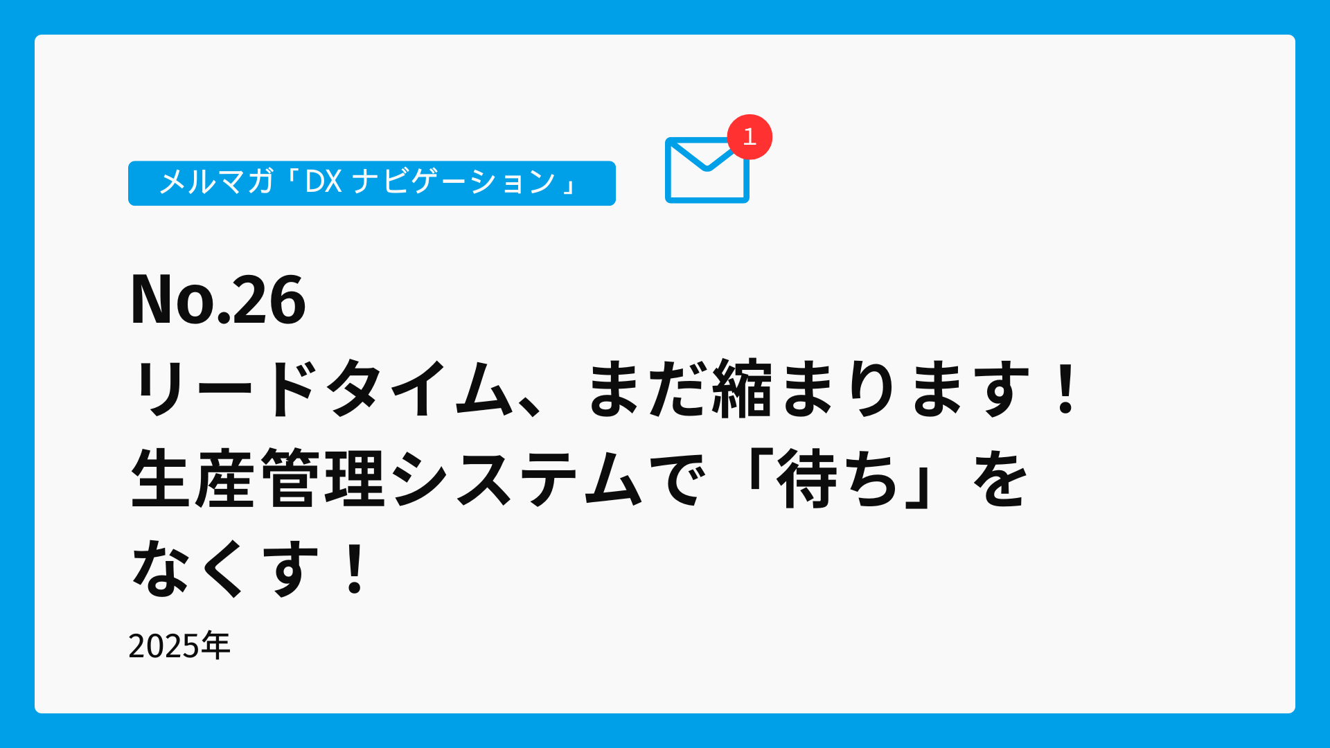 メルマガ「DX ナビゲーション」バックナンバー:第26号 リードタイム、まだ縮まります!生産管理システムで「待ち」をなくす!