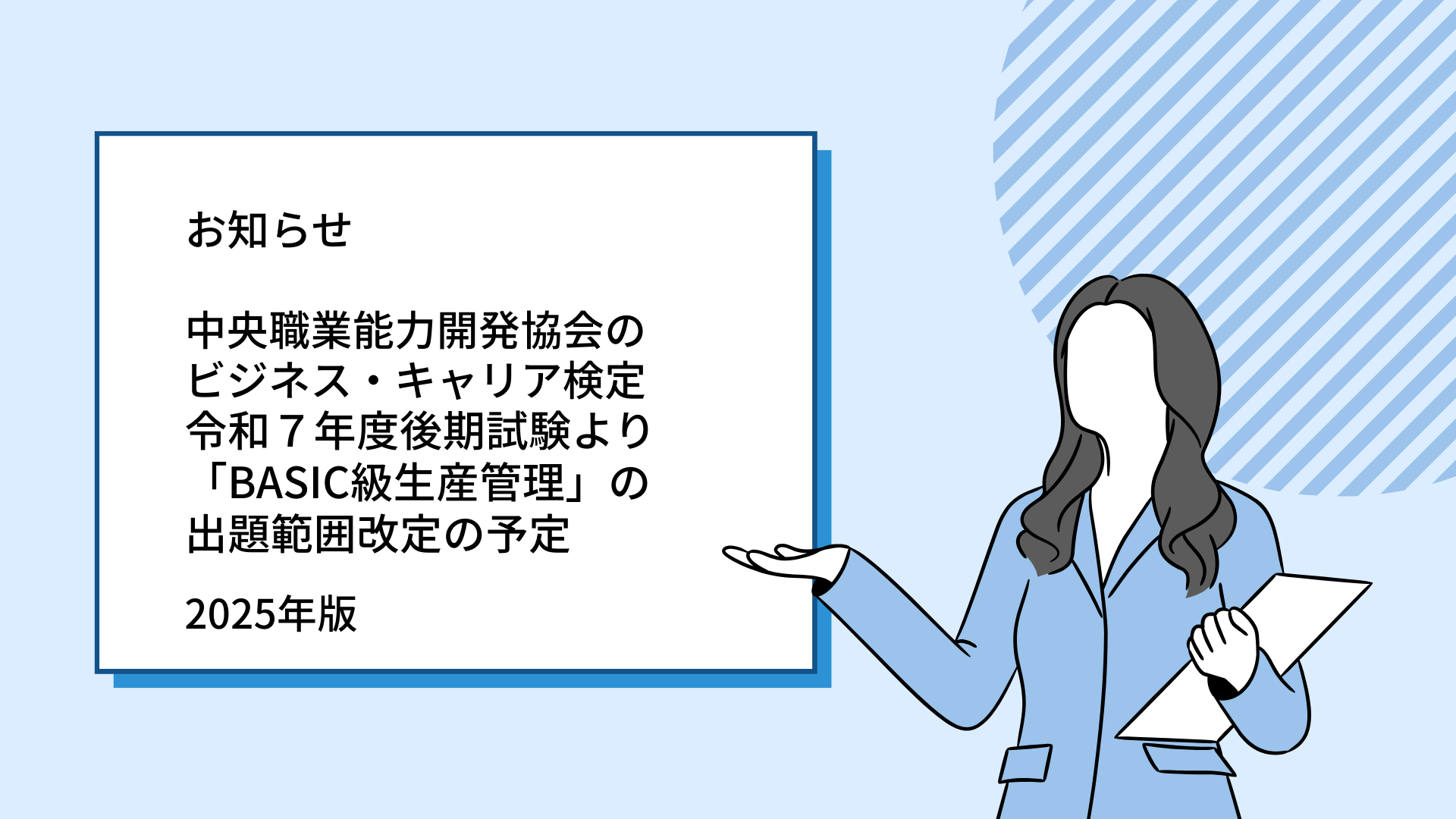 中央職業能力開発協会のビジネス・キャリア検定、令和7年度後期試験より「BASIC級生産管理」の出題範囲改定の予定