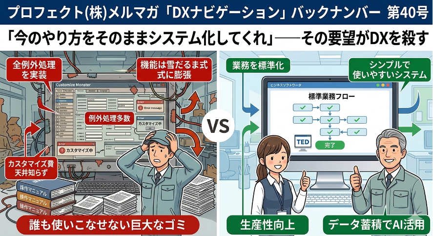 プロフェクト(株)メルマガ 「DXナビゲーション」バックナンバー:第40号「今のやり方をそのままシステム化してくれ」――その要望がDXを殺す