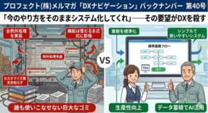 プロフェクト(株)メルマガ 「DXナビゲーション」バックナンバー:第40号「今のやり方をそのままシステム化してくれ」――その要望がDXを殺す