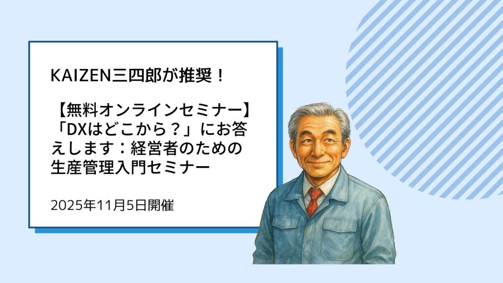 KAIZEN三四郎が推奨!【無料オンラインセミナー】「DXはどこから?」にお答えします:経営者のための生産管理入門セミナー